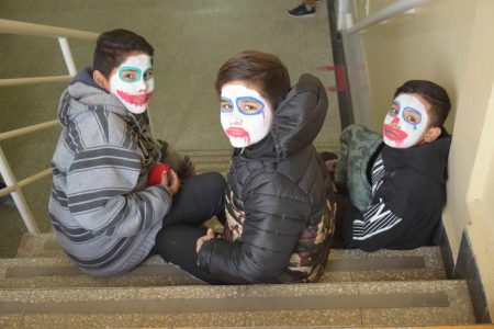 Los niños pasaron por el salón de belleza y eligieron sumarse a la temática de la casa del terror.