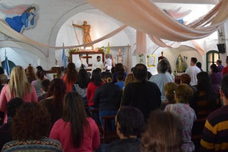 La Capilla Cristo Caminante durante la misa en la que el padre Jorge Sánchez resaltó la importancia del camino recorrido por el Padre Mario. También, convocó a seguir sumándose para las próximas celebraciones.