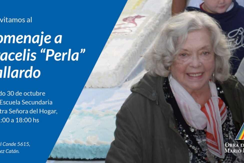 Esperamos contar con tu compañía en el homenaje a Aracelis “Perla” Gallardo, quien fue la persona que acompañó al Padre Mario durante más de 50 años para concretar su sueño de mejorar la calidad de vida de las personas de González Catán. El encuentro se llevará a cabo en González Catán, en la Escuela Secundaria…